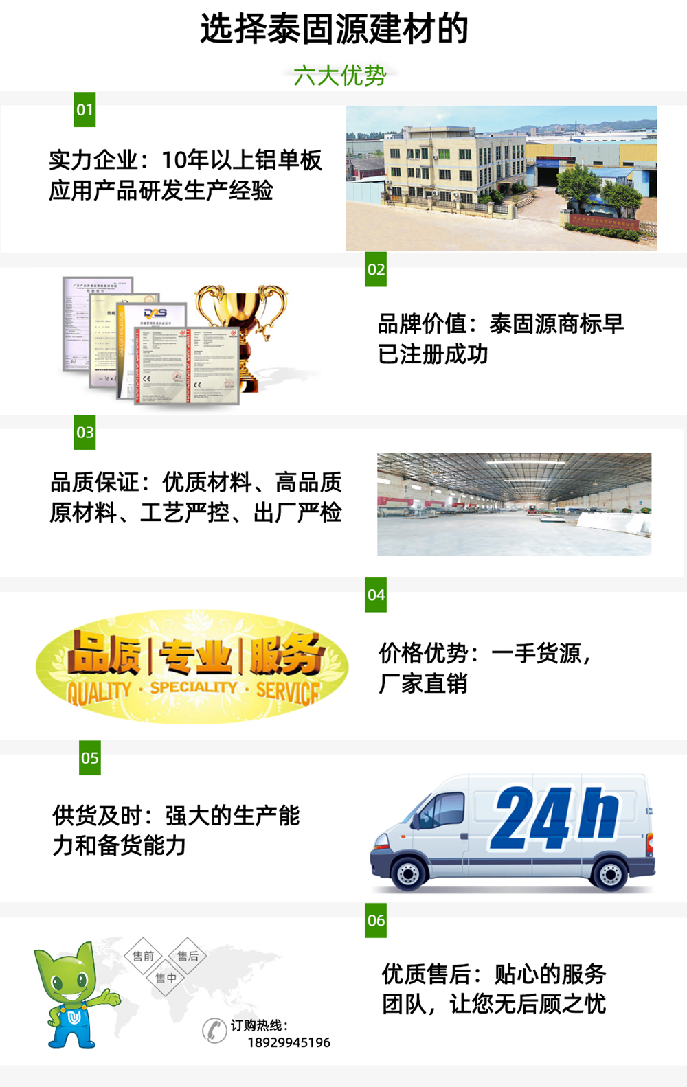 關(guān)于我們佛山市泰固源裝飾材料有限公司是一家研發(fā)、生產(chǎn)鋁單板和陶土板、航空板三大系列的大型企業(yè)。公司成立于二零一零年,鋁單板占地面積10000平米,陶土板占地面積300畝。擁有環(huán)境優(yōu)雅、寬敞、明亮的現(xiàn)代化標(biāo)準(zhǔn)廠房及辦公大樓。位于佛山市南海區(qū)里水勝利工業(yè)園,地理位置優(yōu)越。我司技術(shù)實力強大,生產(chǎn)管理科學(xué)嚴(yán)謹(jǐn)。它在引進意大利生產(chǎn)設(shè)備的基礎(chǔ)上,立足于持續(xù)革新制造工藝,使各項技術(shù)指標(biāo)遠(yuǎn)遠(yuǎn)超出國家及行業(yè)標(biāo)準(zhǔn),跨入先進水平行列,在經(jīng)濟和社會效益方面取得了巨大的成就。我司自主研發(fā)、生產(chǎn)泰固源鋁單板,泰固源陶土板這兩大系列產(chǎn)品,多年來,經(jīng)過公司全體員工的通力協(xié)作,我們的品牌產(chǎn)品(泰固源,辛源牌)得到業(yè)內(nèi)人士一致認(rèn)可。銷售網(wǎng)點遍布國內(nèi),并與諸多國內(nèi)外客戶建立了長期友好的合作關(guān)系,產(chǎn)品銷往國內(nèi)并走向世界